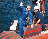 2009年8月1日,普京乘潜艇潜入贝加尔湖,潜至湖面以下大约1400米处。 新华社发