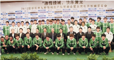 3月7日,浙江绿城在中超开战前举行了与记者见面会,会上所有绿城队员走上T型台,与中外媒体记者见面。 本报记者 潘良干 摄
