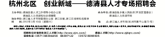 时 间:2012年3月10日 (星期六) 地 点:浙江省人才市场(杭州市莫干山路73号)