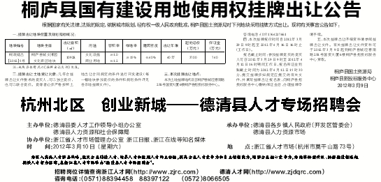时 间:2012年3月10日 (星期六) 地 点:浙江省人才市场(杭州市莫干山路73号)