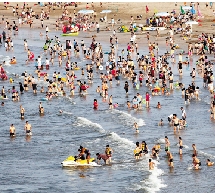 舟山滨海浴场游人如织。
