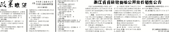 受浙江省储备粮管理公司委托,浙江省粮油交易信息中心定于2012年3月16日在杭州举行省级储备粮公开竞价销售活动。现公告如下: