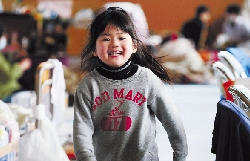 2011年4月2日,小贵华站在日本岩手县陆前高田市一家避难所内。