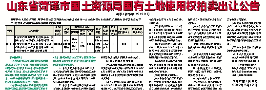 山东省菏泽市国土资源局国有土地使用权拍卖出让公告