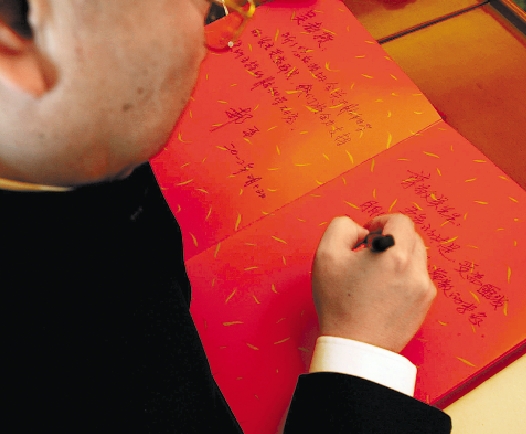 3月12日,全国政协十一届五次会议第42组的教育界别全国政协委员在最后一次小组讨论行将结束之际,互相留言道别,同时每位委员都收到了一幅集体合影照片。简报组的刘志芳吟诵了自己创作的诗歌《道别》,其中有“无约不轻别”、“明日再相逢”等句子,道出了委员和服务人员共同的心声。 新华社记者 金立旺 摄 |