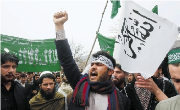 3月13日,在阿富汗东部城市贾拉拉巴德,一名抗议者高呼反美口号参加示威游行。 新华社发