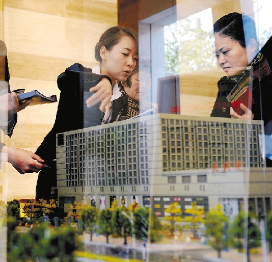 3月13日,在杭州滨江区一楼盘销售现场,售楼小姐正在向购房者介绍楼盘降价促销信息。