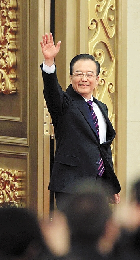 温家宝步入会场。 新华社记者 金立旺 摄