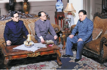 唐国强在剧中饰演毛泽东,图为《五星红旗迎风飘扬2》剧照。