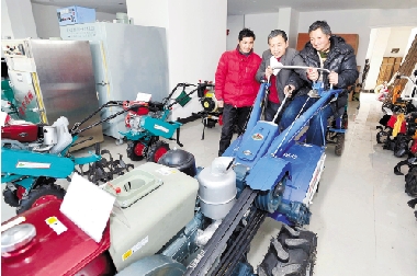临安市高虹镇高乐村的蔬菜大户王来喜,在浙江洋马农业装备有限公司选购农机。由于惠农政策早知晓,许多农民趁着晴好天气进城采购农机。 张伟星 陈欣 摄