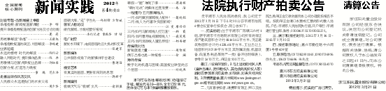 受平湖市人民法院的委托,我公司定于2012年3月31日下午2时30分在平湖市法院4楼会议室举行拍卖会,现公告如下:
