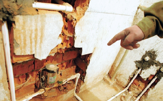 为安装水泵,卫生间被敲得千疮百孔。邵全海 摄