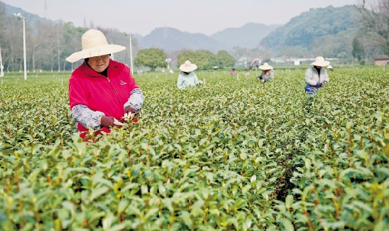 3月22日,天气晴好。省茶叶研究所的西湖龙井茶基地内,茶农开始少量采摘今年头茬西湖龙井新茶。