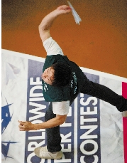 3月21日,在巴西圣保罗大学举行的世界纸飞机大赛资格赛上,一名参赛选手投掷纸飞机。世界纸飞机大赛每三年举办一次。今年,来自80多个国家和地区的学生将通过500场资格赛取得决赛参赛资格。 新华社发