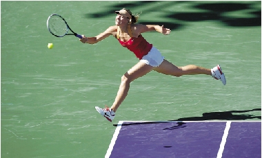 3月22日,在美国迈阿密举行的索尼爱立信网球公开赛女单第二轮比赛中,俄罗斯选手莎拉波娃以2比1战胜以色列选手皮尔,晋级下一轮。 新华社发