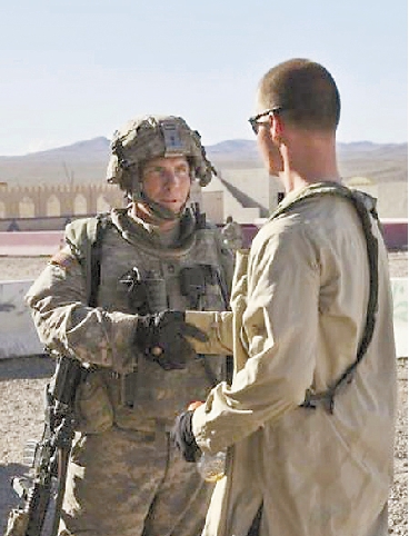 这张资料照片显示,2011年8月23日,涉嫌在阿富汗枪杀平民的美军士兵罗伯特·贝尔斯(左)在位于美国加利福尼亚州欧文堡的国家训练中心参加训练。 新华社发