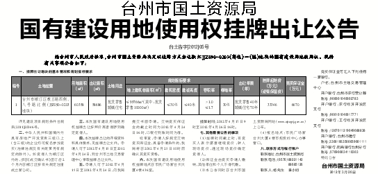 (3)本公告同时在台州市国土资源局网站(www.zjtzgtj.gov.cn)上公布。