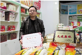 嘉兴首届农民大学生苏明法和他创办的公司销售的富硒营养大米。