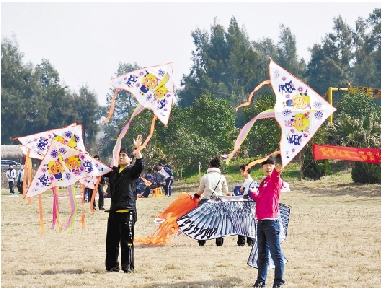3月27日,台州市路桥区第二届青少年风筝大赛在金泉农庄举行,各乡镇代表队齐聚一堂,竹篾的,软体的,各类风筝竞飞蓝天。 陶文彪 摄