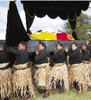 3月27日,人们在汤加首都努库阿洛法抬着汤加国王图普五世的棺椁,从皇宫前往皇家墓地。当天,汤加为18日逝世的国王图普五世举行葬礼。图普五世18日在中国香港病逝,享年63岁。乔治·图普五世于2006年其父图普四世病逝后继承王位,去年他被确诊患有癌症。 新华社发