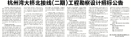 杭州湾大桥北接线(二期)工程勘察设计招标公告