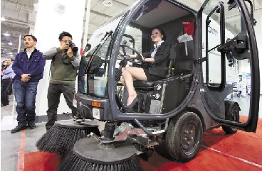 昨日,在宁波举行的首届环卫设备推介会上,38款新颖智能环卫车亮相,有扫路车、餐厨垃圾收运车、清扫吸尘车、高压清洗车等。 胡建华 郑涛 摄