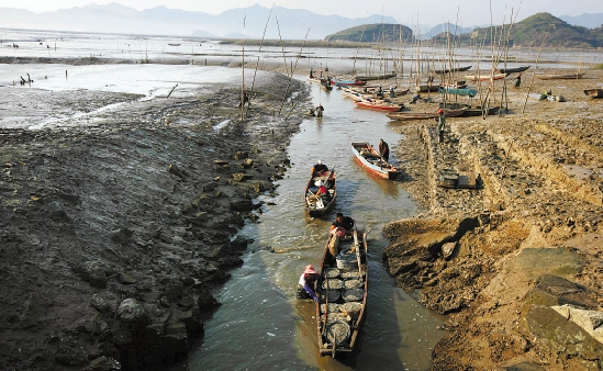 昨天早晨6时半,阳光初起,三门县花桥镇栅下村岩下洋塘里热火朝天,几十位渔民在退潮后的滩涂里忙着刮蛏苗。今年蛏苗大丰收,产量高,销量也好。船一靠岸,商贩们就涌上来收购。 记者 邵全海 报道组 倪中勇 任亦将 摄