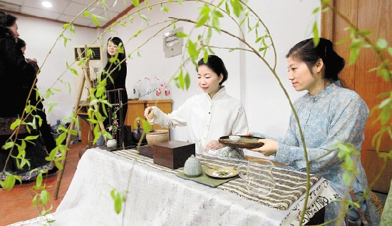 第15届西湖国际茶会3月30日在中国茶叶博物馆开幕,西湖龙井开茶节同时启动。杭州的一些茶馆还举行了“晒茶赛水品茶香”雅集活动,现场演示西湖龙井的多种泡法。 吴煌 张迪 摄