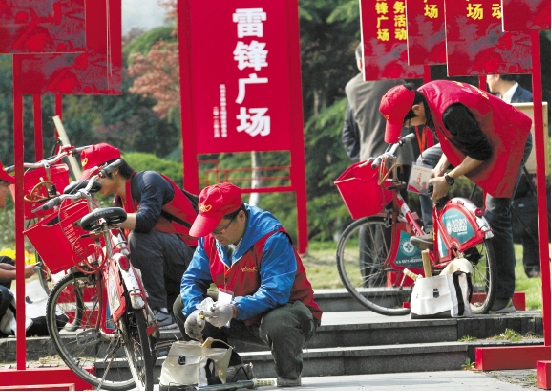 | 4月7日,杭州市在吴山广场设立“雷锋广场”。今后,杭州市文明办将每月的第一个星期六定为“学雷锋为民服务日”,杭州各区、县(市)在“雷锋广场”分别设立雷锋角,常态化开展学雷锋为民志愿服务活动。 本报记者 董旭明 林云龙 摄 |