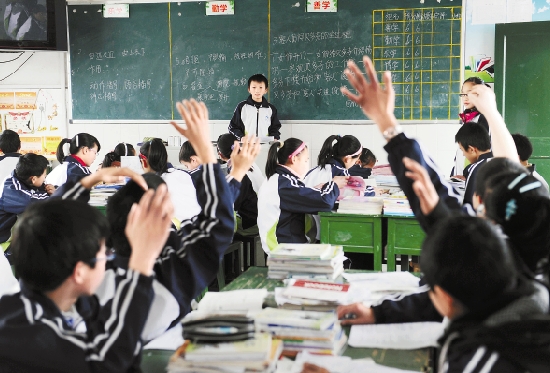 昆桐中学的学生在上课讨论。 本报记者 梁臻