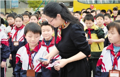 | 近日,“快乐科学校园行”的科普动车开进了慈溪市宏展小学、定海区育才小学和明珠小学。除了带去有趣好玩的体验游戏,还给孩子们安排了交通安全知识竞猜的环节。孩子们争先恐后举起小手回答问题,不到40分钟时间,老师们手里的文具就告罄了。 图为慈溪市宏展小学安全知识竞猜活动中,答对的孩子从校长手中接过奖品。 |