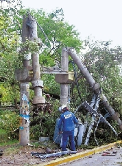 4月9日,在阿根廷布宜诺斯艾利斯省的莫雷诺,一名工人在查看被暴风毁坏的电线杆。当天,布宜诺斯艾利斯地区遭遇百年不遇的暴风雨,造成17人死亡。 新华社发