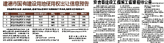 根据国家有关法律、法规的规定,建德市国土资源局于近期拟推出下列地块,现将有关事项预告如下: