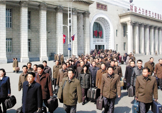 朝中社提供的图片显示,来参加11日朝鲜劳动党代表大会的各地代表陆续抵达首都平壤。 新华社发