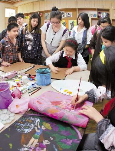 4月11日,泰国东方大学孔子学院汉语夏令营的学员来到温州墨池小学参观交流。学员们在温州半个月时间,将学习汉语听说读写、瓯文化等课程。 赵用 摄