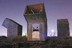 老姚的手电光划过建筑作品《厕所》。