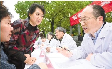 4月15日至21日是全国肿瘤防治宣传周,15日上午,台州医院与台州市癌症康复协会在临海崇和门广场举行大型义诊活动,为广大市民提供癌症康复等咨询服务。 方永乐 摄