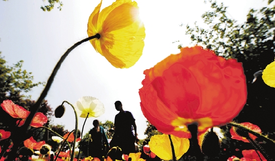 4月17日,2012中国杭州·西溪花朝节开幕。本届花朝节展出的450多种花卉分成十二大展区、九大主题,布满西溪湿地的绿堤。 梁臻 周旻澍 摄