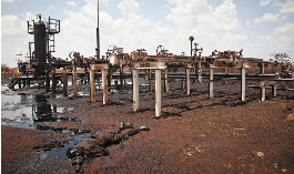 4月17日拍摄的一名武装人员的尸体躺在哈季利季油田设施旁。 新华社发