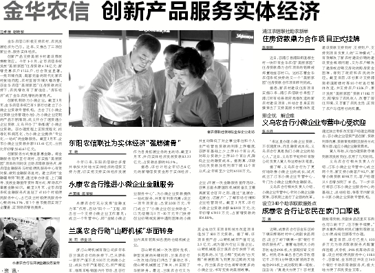 金华农信以积极支持农村、农民发展经济为己任。近来,又推出了三项创新业务,服务实体经济。
