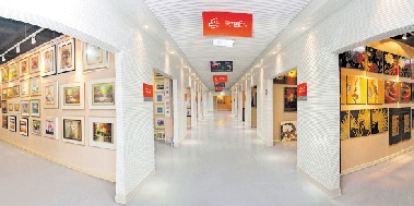义乌文化创意企业华鸿控股集团,从简单的画框生产到创意生产油画、卡纸画、板画、皮画、水晶画等五大类近万种装饰画品种。图为其产品展示厅。