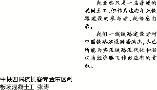 我们一线铁路建设者对中国铁路建设踌躇满志,尽己所能为实现铁路现代化和浙江省经济腾飞作出应有的贡献。
