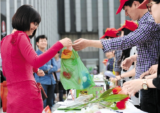 4月27日,杭州下城区社区文化节在坤和中心广场启动。在青年志愿者爱心集市现场,可供选择的商品有几十种,都是爱心人士和辖区企业捐助的,义卖所得用于慈善公益活动。