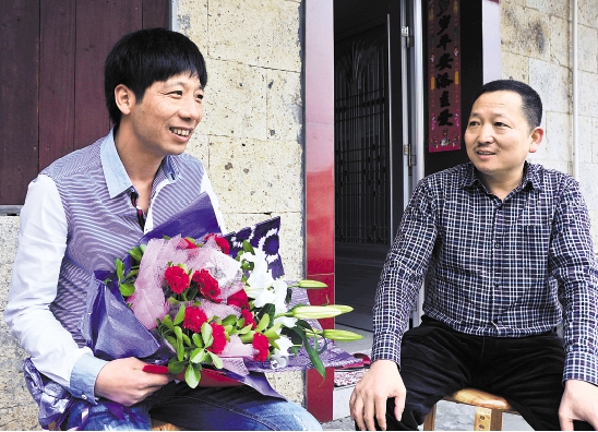 镇村干部看望慰问陈新辉(左一) 朱海伟 摄