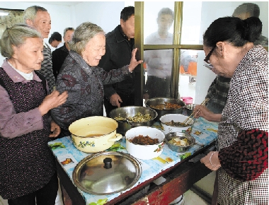 爱心食堂里,老人们正开心地排队打饭。本报记者 林云龙 摄