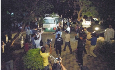 4月26日,在巴基斯坦首都伊斯兰堡,本·拉丹家人乘坐的汽车出发前往机场。在前“基地”组织领导人本·拉丹的三个妻子和两个女儿结束了45天的监禁期数天之后,巴基斯坦当局27日驱逐本·拉丹的三个妻子及家庭成员出境,他们将前往沙特阿拉伯。 新华社发 |