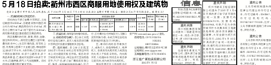 5月18日拍卖:衢州市西区商服用地使用权及建筑物