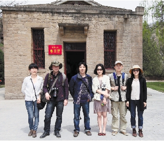 浙报记者和美院师生在陕西延安杨家岭合影留念。