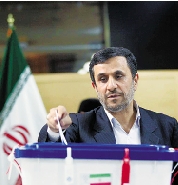 5月4日,在伊朗首都德黑兰一投票站,伊朗总统艾哈迈迪-内贾德在投票。伊朗第九届议会选举4日举行补选,130名候选人角逐今年3月第一轮选举后剩余的65个议会席位。 新华社发