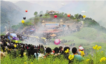 动漫节开幕当天,山里村人山人海。 林楚炳 摄